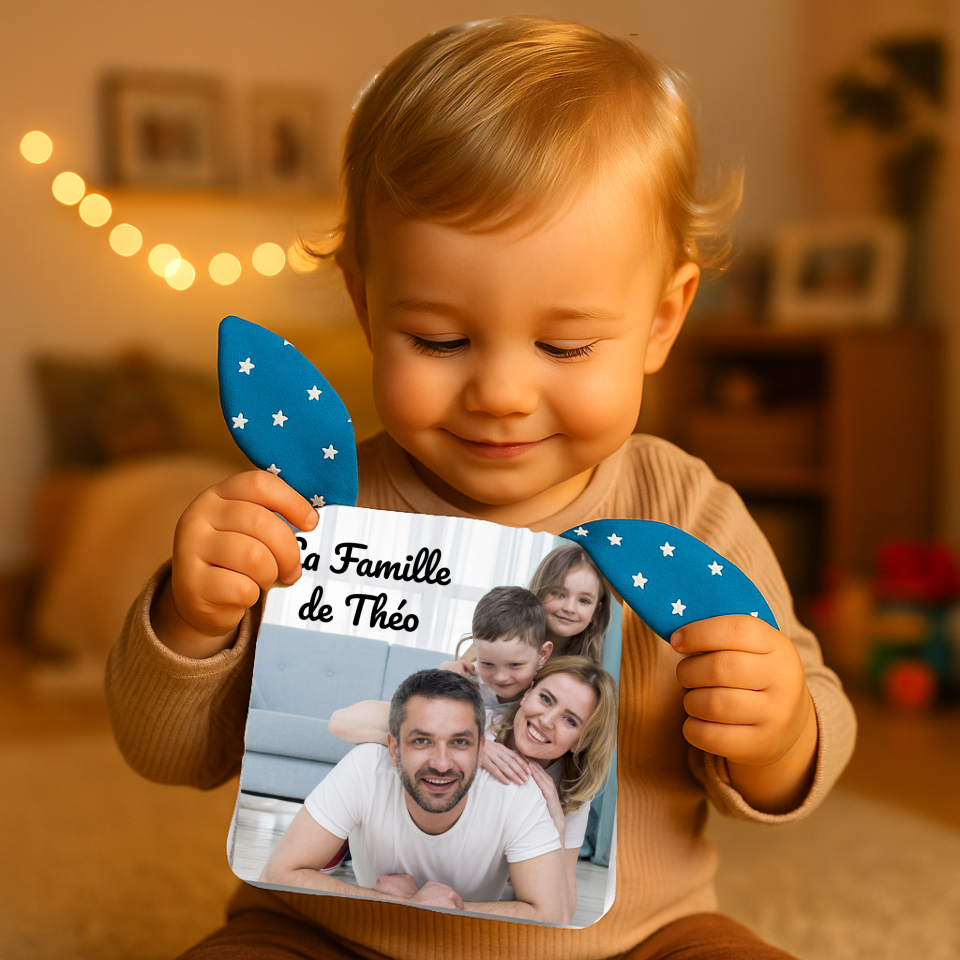 🎨 100% Personnalisable : 1 à 4 Photos, Texte, Dessins et 20 tissus au choix pour les oreilles