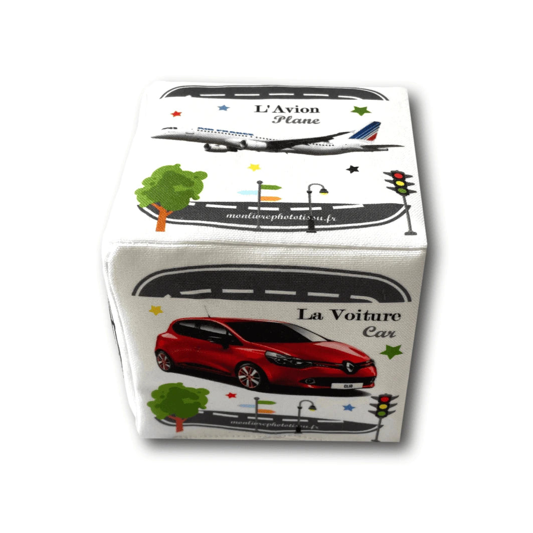 Lot 3 Cubes d'éveil éducatifs en tissu - Animaux foret, véhicules, fruits et légumes
